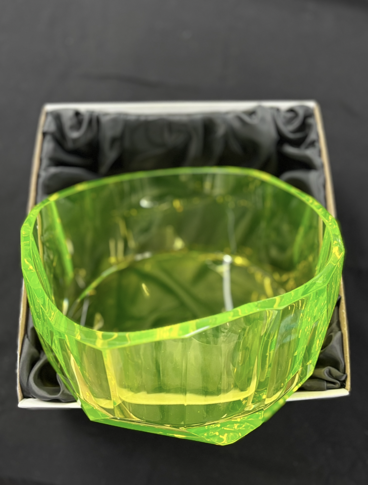 Seznamte se s Elvírou – uranovou mísou, která ví, jak upoutat pozornost! Díky silným broušeným hranám kombinuje krásu s praktičností a přináší do vašeho interiéru špetku sofistikovaného šarmu… a možná i lehký "wow" efekt. Elvíra je připravená stát se hvězdou vašeho stolování (a vašeho interiéru).